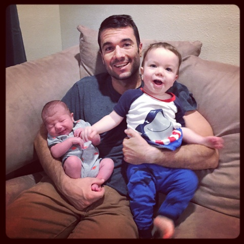 Eli grinned from ear to ear when he saw his dad but was a little shy at first. He just stared at him for a long time. Hubs held Eli as he met baby Bennett and just talked to him. It doesn't take Eli long to warm up to anyone, so they were running around and wrestling and giggling soon after.